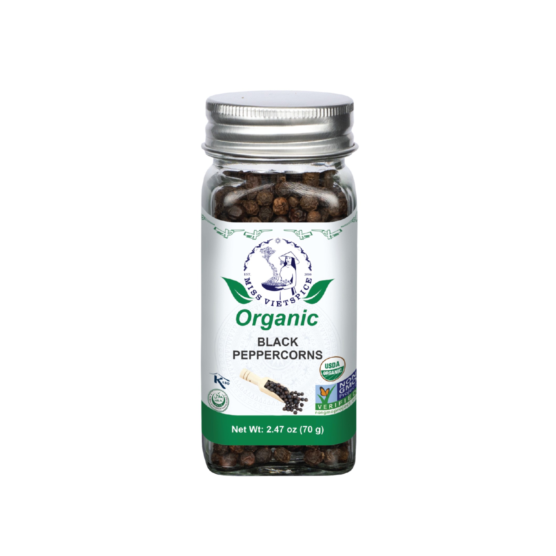Organic Black Peppercorns (70g Jar) – Experience the pure flavor of a premium spice that is more than just a seasoning. This product is the result of sustainable farming, proudly achieving the world’s three most prestigious organic certifications: USDA Organic, EU Organic, and JAS